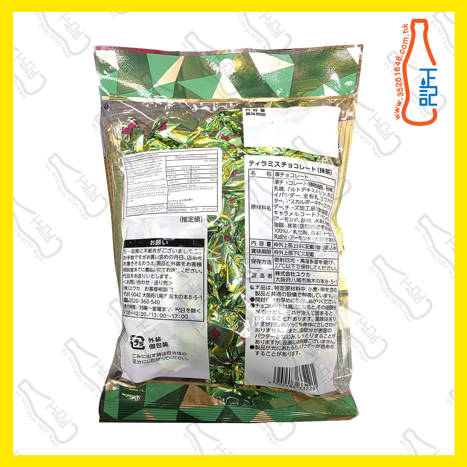 ==Yuka 提拉米蘇 【抹茶味】朱古力 130g