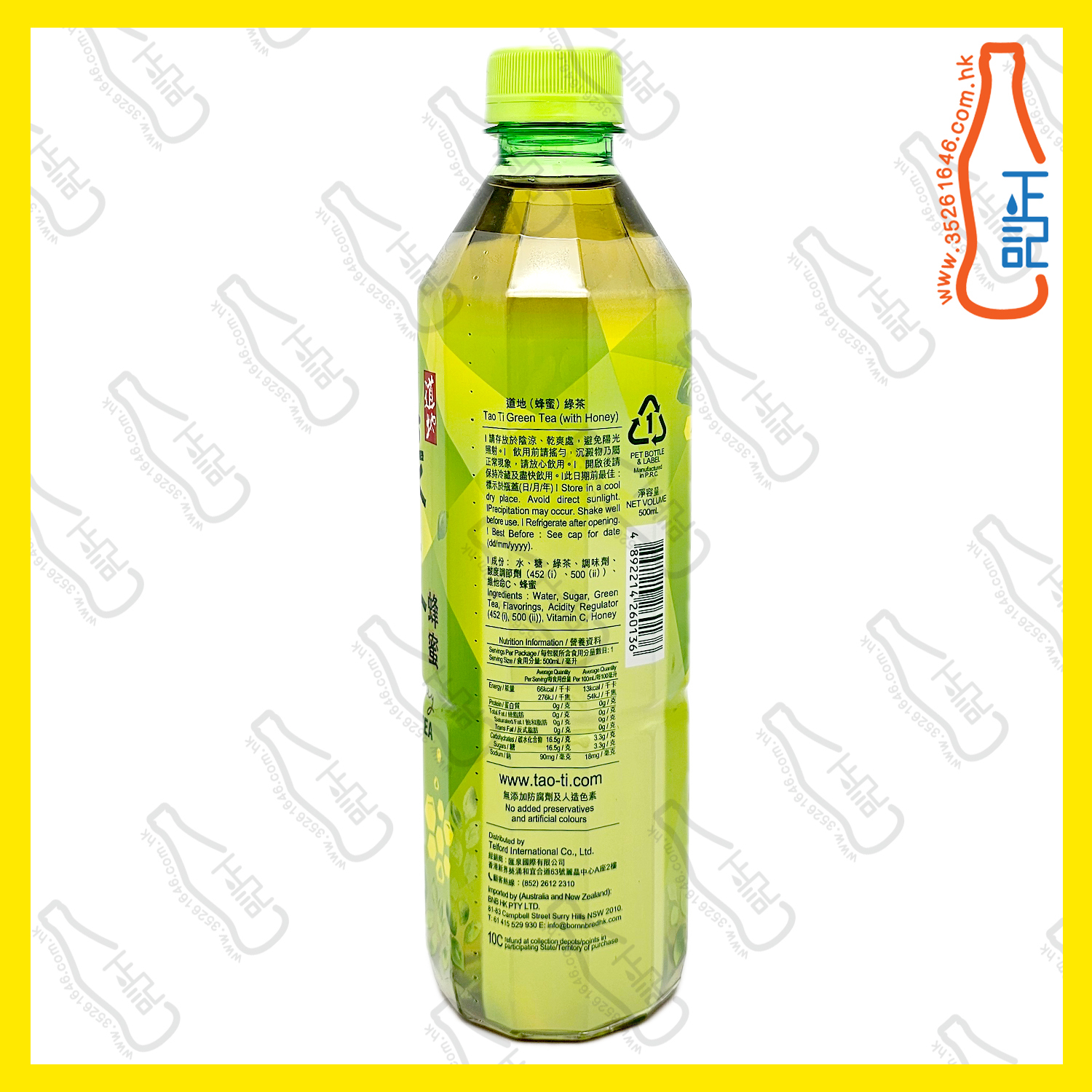 (支裝) 道地蜂蜜綠茶 500ml x 24支
