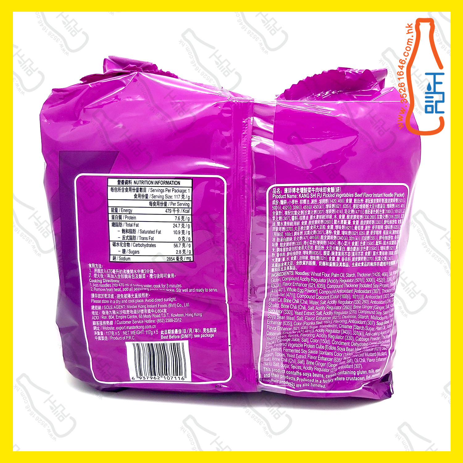 (袋裝)康師傅老壇酸菜牛肉麵 5包 x 6袋