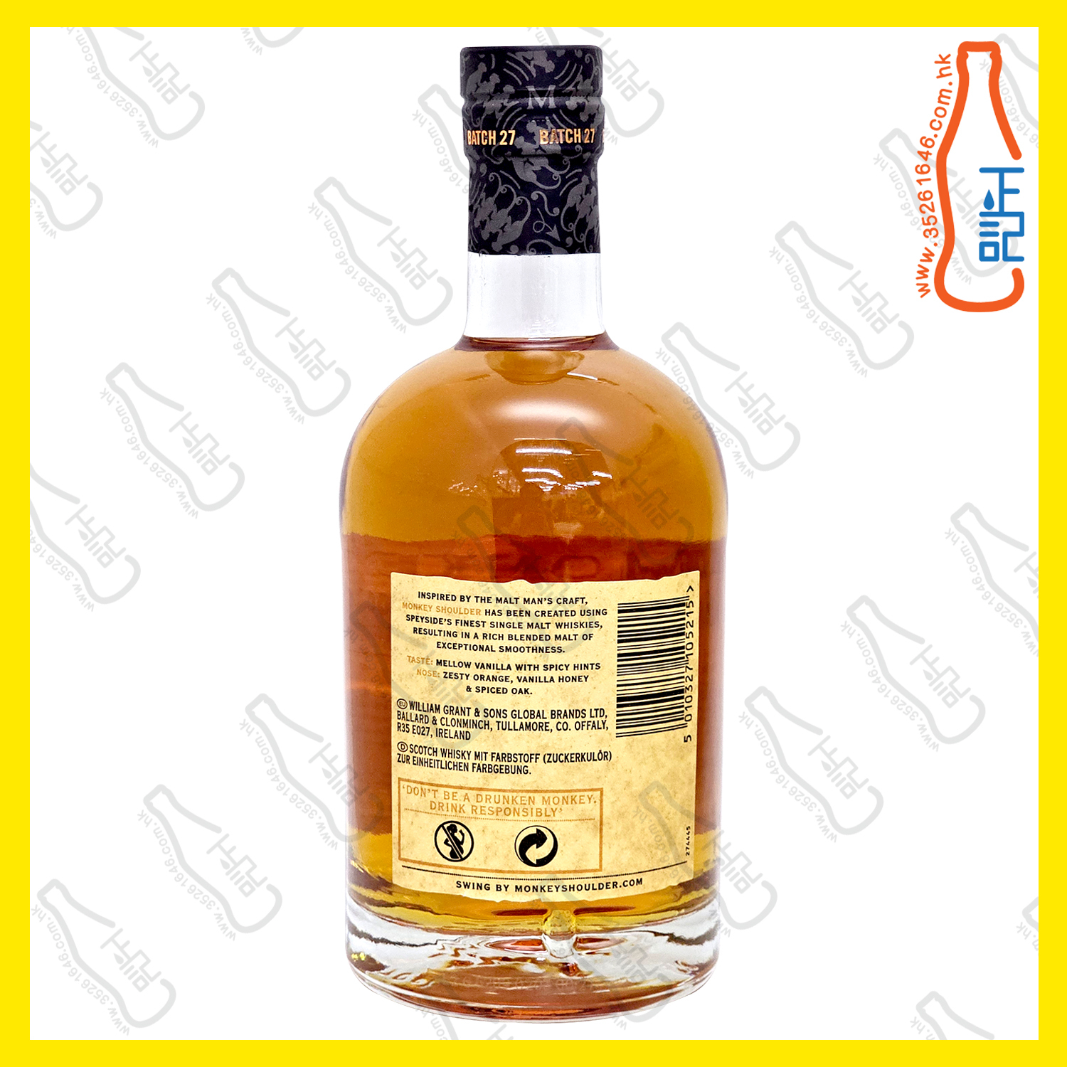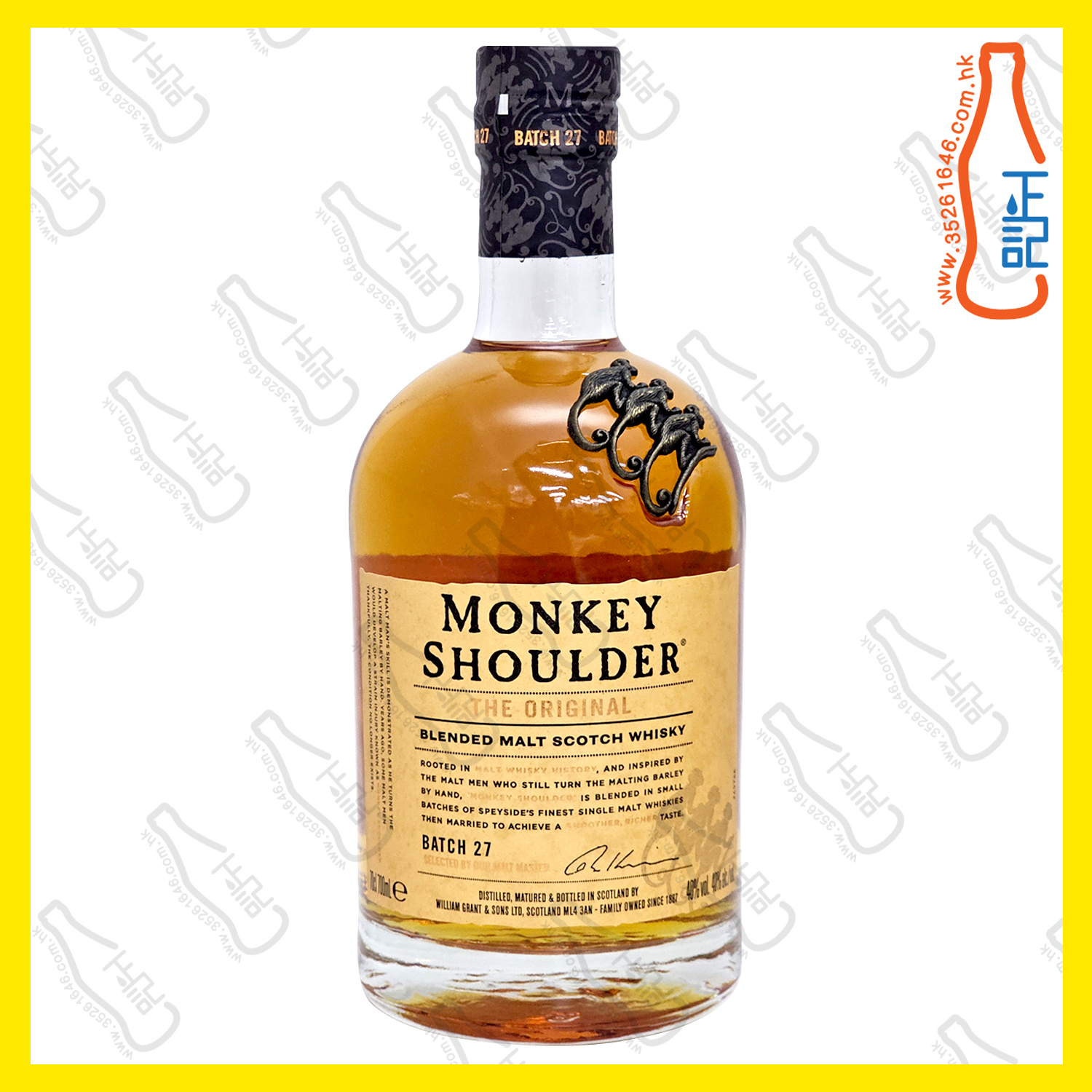 我們的招牌 Monkey Shoulder 風味,大膽滑爽,果味醇厚。 它大膽到可以在一杯酒中脫穎而出,平衡到不能壓倒它。 您可品嚐到醇厚而充滿活力的混合麥芽威士忌,威士忌雞尾酒的理想混合器,威士忌愛好者的完美禮物,裝在70cl的瓶子裏。