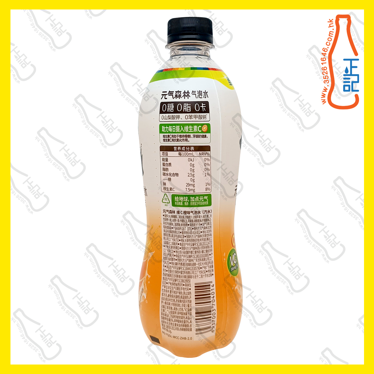 元氣森林維C(橙味)碳酸蘇打水 480 ml x 15支