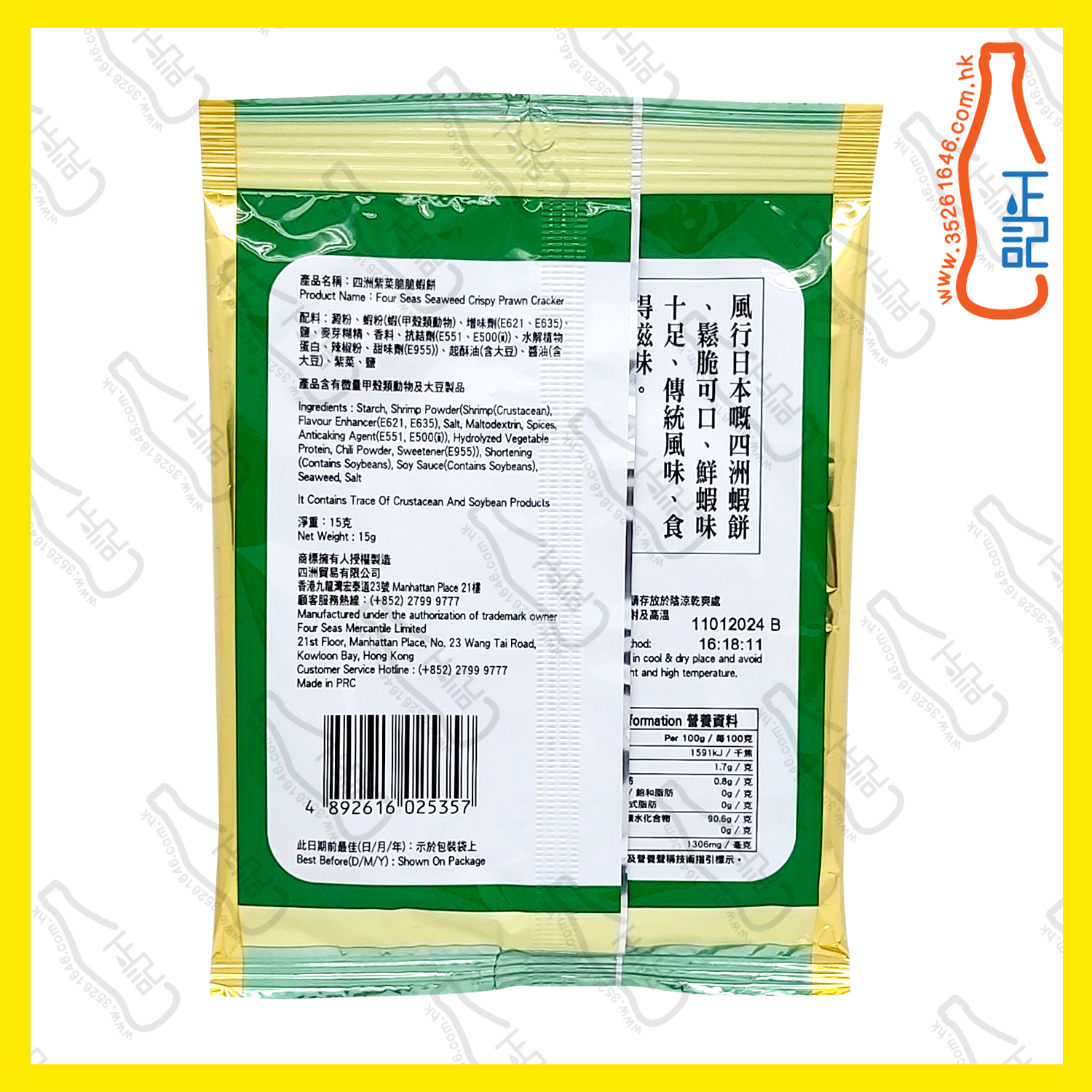 四洲(紫菜)蝦餅(綠色) 15g x 5包 / 份