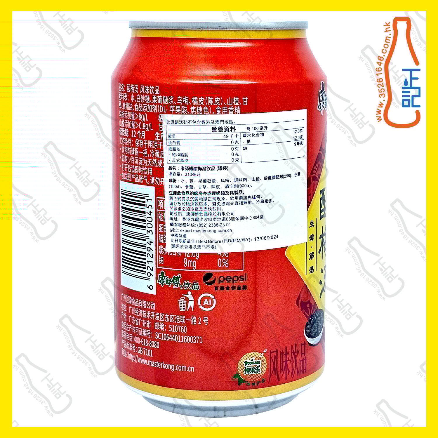 康師傅酸梅湯 310ml x 24罐